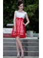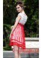 Home >  Prom Dresses >  Short Prom Dresses > White and Red Empire Bateau Knee-length Organza Beading Prom / Homecoming Dress
