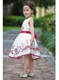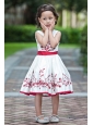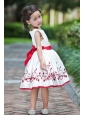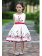 White and Red Flower Girl Dress A-line Scoop Taffeta Embroidery Tea-length