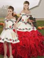 White And Red Lace Up Quinceanera Dresses Embroidery and Ruffles Sleeveless Floor Length