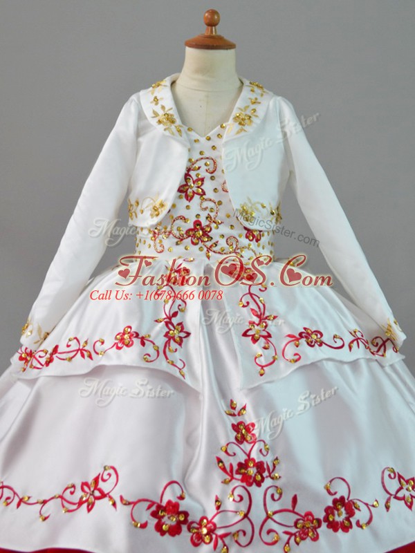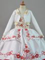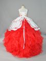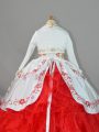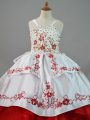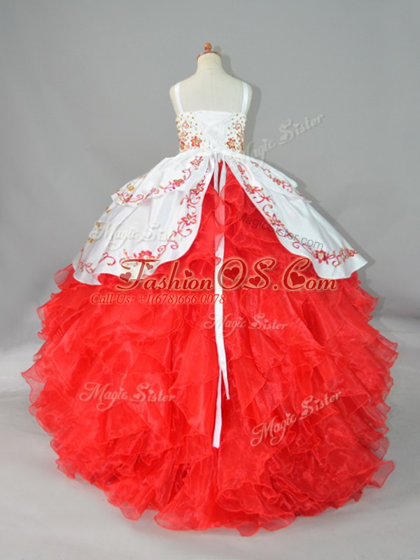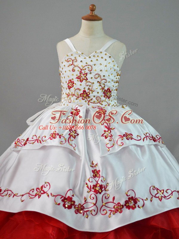 White And Red Little Girls Pageant Dress Wholesale Straps Sleeveless Sweep Train Lace Up