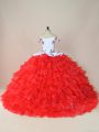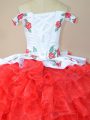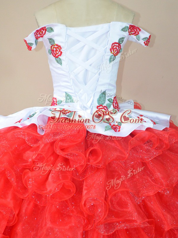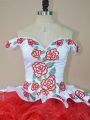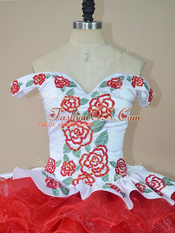 White And Red Sleeveless Embroidery and Ruffles Lace Up Sweet 16 Quinceanera Dress