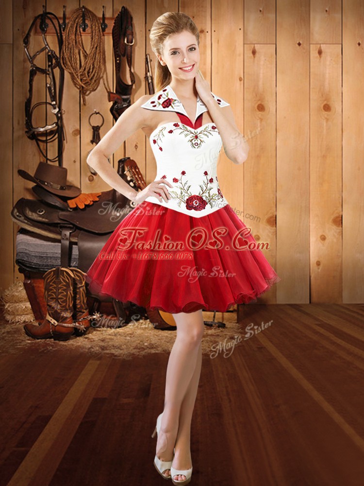 White And Red Sleeveless Embroidery Floor Length Quince Ball Gowns