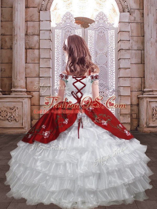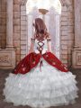 White And Red Taffeta Lace Up Spaghetti Straps Sleeveless Floor Length Pageant Dress Wholesale Embroidery and Ruffled Layers