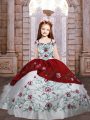 Home >  Special Occasion Dresses >  Mini Quinceanera Dresses > White And Red Taffeta Lace Up Spaghetti Straps Sleeveless Floor Length Pageant Dress Wholesale Embroidery and Ruffled Layers
