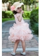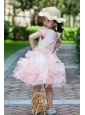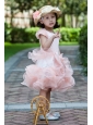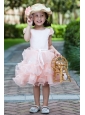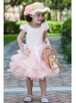 What a lovely flower girl dress! Here are the words coming to mind to describe this dress at the first sight: fun, lovely and saucy. The dress features with cap sleeves and forms a boat neck. The pick-ups in the skirt will make the girl more vivacious. The back is dotted with delicate clasps.