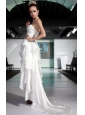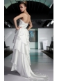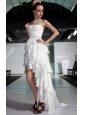 White Asymmetrical Strapless High-low Elastic Woven Satin Beading Prom / Pageant Dress