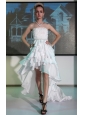 Home >  Prom Dresses >  Discount Prom Dresses > White Asymmetrical Strapless High-low Elastic Woven Satin Beading Prom / Pageant Dress
