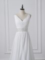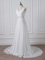 White Backless Wedding Dress Beading and Ruching Sleeveless Brush Train