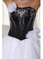 This dress features a one shoulder strap and black bodice and white skirt. The embroidery on the top part is unique and sumptuous. This style is simple yet elegant. If you are a person who want something simple but gorgeous, this is the best choice for you. And zipper up back finishes the look of this elegant dress.