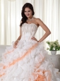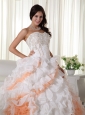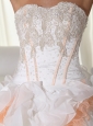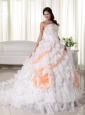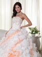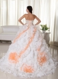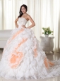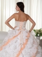 White Ball Gown Sweetheart Court Train Organza Appliques Quinceanera Dress
