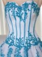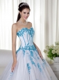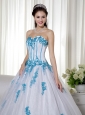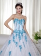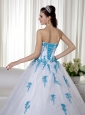 Elegant and alluring! The dress is designed with a strapless sweetheart neckline on the fitted bodice. The blue appliques adds the charm. When you put on the white dress,you will feel soft and feminine. A corset back completes the look.