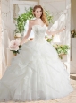 White Ball Gown Sweetheart Organza Court Train Beaded and Bubbles Quinceanera Dress