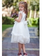 This white flower girl dress features sleeveless and bow design. Bows feature the straps. The white color and the layer design highlight the cute style and individual taste which is especially suitable for you to attend those kinds of parties.