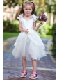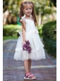 White Ball Gown V-neck Flower Girl Dress Tea-length Taffeta Organza Hand Made Flowers