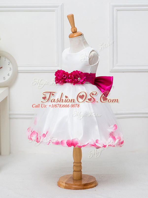 White Ball Gowns Appliques and Hand Made Flower Little Girls Pageant Dress Zipper Tulle Sleeveless Knee Length