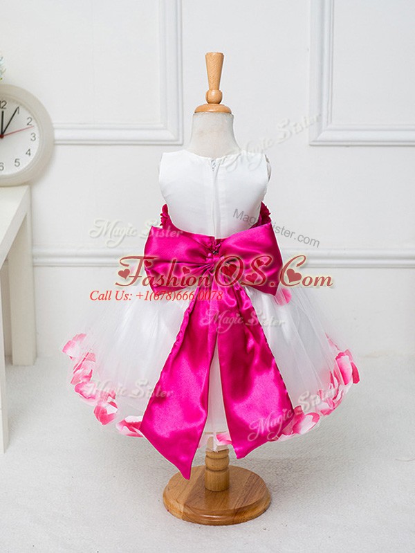 Home >  Special Occasion Dresses >  Mini Quinceanera Dresses > White Ball Gowns Appliques and Hand Made Flower Little Girls Pageant Dress Zipper Tulle Sleeveless Knee Length