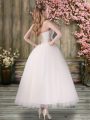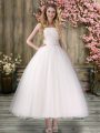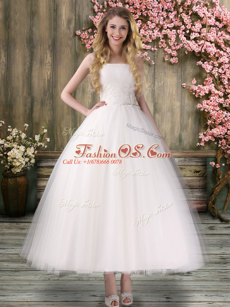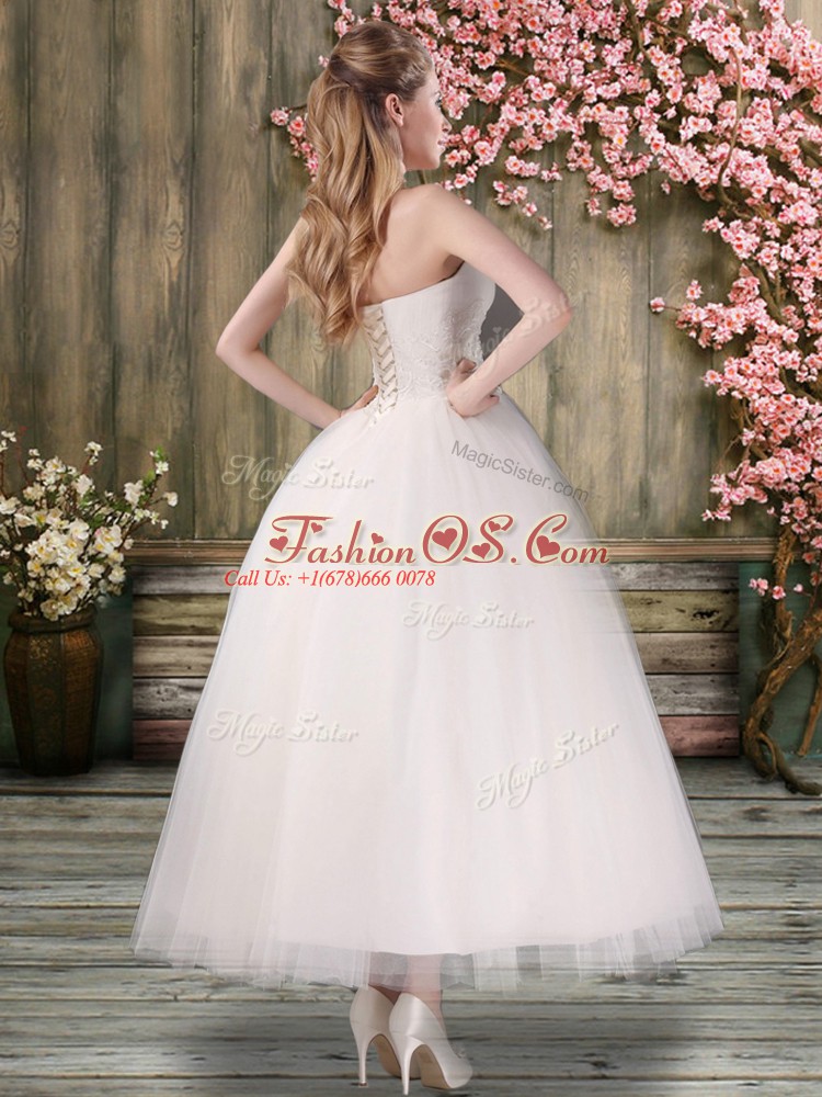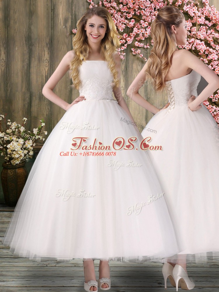 White Ball Gowns Off The Shoulder Sleeveless Organza Ankle Length Lace Up Embroidery Wedding Dresses