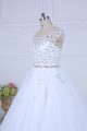 White Ball Gowns Off The Shoulder Sleeveless Tulle Court Train Lace Up Beading Bridal Gown
