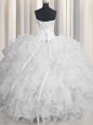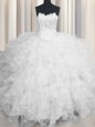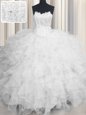 White Ball Gowns Scalloped Sleeveless Organza Floor Length Lace Up Beading and Ruffles Quinceanera Gowns