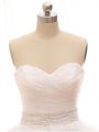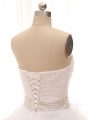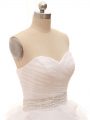 White Ball Gowns Sweetheart Sleeveless Tulle Brush Train Lace Up Beading and Ruffles Wedding Dresses