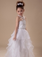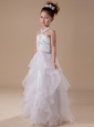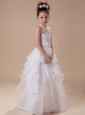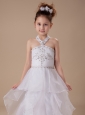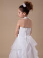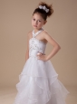 White Beading Organza Halter Floor-length Flower Girl Dress