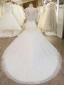 White Bridal Gown Tulle Chapel Train Sleeveless Beading and Appliques