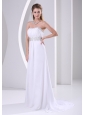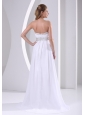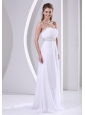 White Chiffon Beaded Sweep Train 2013 Prom / Evening Dress For Custom Made