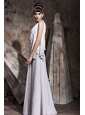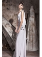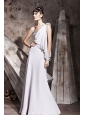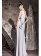 White Column One Shoulder Floor-length Chiffon Beading Prom Dress