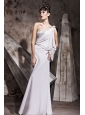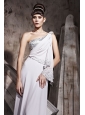 Home >  Evening Dresses > White Column One Shoulder Floor-length Chiffon Beading Prom Dress