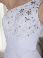 Make an entrance in this elegant and romantic white prom dress! This one is comprised of one shoulder neckline adorned with dazzling flora beading and appliques. The twisted ruched waistbands cross the one shoulder on the open back that creats a special effect. The mini-skirt shows off your perfect legs, overlayed a flowing chiffon fabric cascading to the floor, which makes you like a princess. All eyes will be on you!