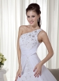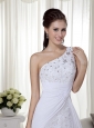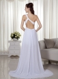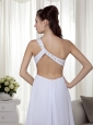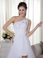 White Column One Shoulder High-low Chiffon Beading Prom Dres