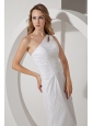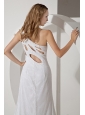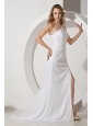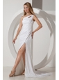 White Column One Shoulder Prom Dress Brush Train Sequin