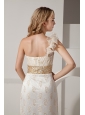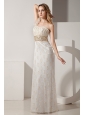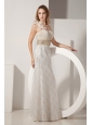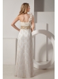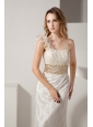 White Column One Shoulder Prom Dress Taffeta and Lace Beading Floor-length