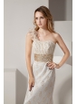 Home >  Prom Dresses >  Beautiful Prom Dresses > White Column One Shoulder Prom Dress Taffeta and Lace Beading Floor-length