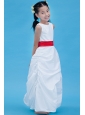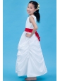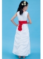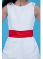White Column Scoop Flower Girl Dress Ankle-length Taffeta Belt