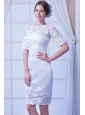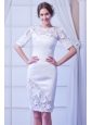 Home >  Wedding Dresses >  Short Wedding Dresses > White Column Scoop Knee-length Satin Wedding Dress