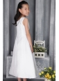 Home >  Flower Girl Dresses > White Column / Sheath Scoop Tea-length Organza Beading Flower Girl Dress