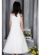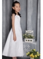 White Column / Sheath Scoop Tea-length Organza Beading Flower Girl Dress