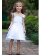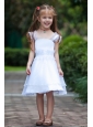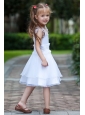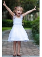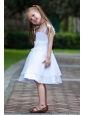 Home >  Flower Girl Dresses > White Column / Sheath Straps Flower Girl Dress Knee-length Taffeta and Organza Beading and Ruffles