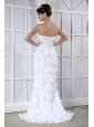 Simply gorgeous this white prom dress is!It features a strapless bodice with a sweetheart neckline and lovely shimmering beadings and embellished appliques throughout that defines your natural waist. The pretty high-low skirt with layers of stunning chiffon fabric contures your slim figure.A luminous sweep train and the lace up back completes this design.