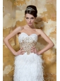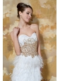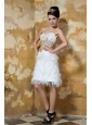 Be the belle of the ball in this fabulous white prom dress includes design of a sweetheart neck which is generally considered more provocative than other style. You can find that gorgeous beadings and embellished appliques decorate the whole bodice which looks charming. The bare back of this sweetheart dress will make you looks sexy.The dramatic skirt is adorned with gorgeous feathers flows freely to your knees defines your slim figure.A zipper up caompletes this magnificent design.Dressing this stuning ball gown, you will light up the night.What are you waiting for?Bring it to your home! Now!
