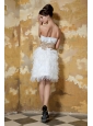 White  Column / Sheath Sweetheart Knee-length Satin and  Feather Beading Prom / Evening Dress
