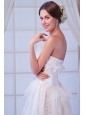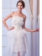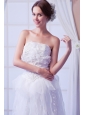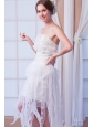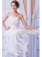 White Column Strapless Asymmetrical Organza   Beading Weeding Dress