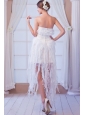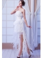 White Column Strapless Asymmetrical Organza Beading Weeding Dress