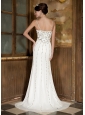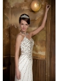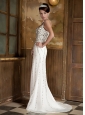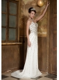 White Column Straps Brush Train Chiffon Rhinestones Prom Dress
