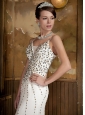 Home >  Prom Dresses >  Cheap Prom Dresses > White Column Straps Brush Train Chiffon Rhinestones Prom Dress