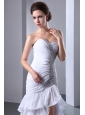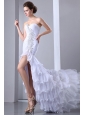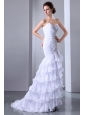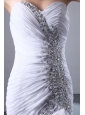 White Column Sweetheart Beading Wedding Dress Brush Train Chiffon