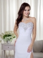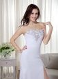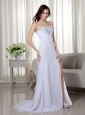 Home >  Prom Dresses >  Beautiful Prom Dresses > White Column Sweetheart Brush Train Chiffon Beading and Ruch Prom / Celebrity Dress
