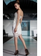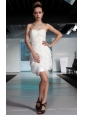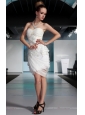 Home >  Prom Dresses >  Short Prom Dresses > White Column Sweetheart Mini-length Chiffon Lace and Ruch Prom Dress