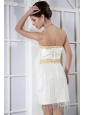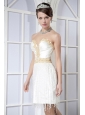 Chic and Sexy! This sleeveless short prom dress consists of a form-fitted ruched bodice edged flaring beadings and a beaded waistband to outstand your slender figure. The short skirt is accented with tassels, which creats a beautiful effect. A hidden zipper makes for easy off and on and secures the dress in place.You will won the standing ovation in this fantastic dress!